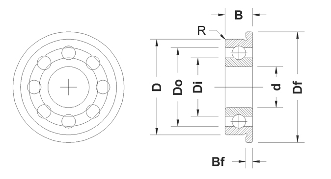 - Os rolamentos de esferas flangeados possuem um anel externo flangeado para facilitar o posicionamento axial na caixa e eliminar a necessidade de ressaltos na caixa.